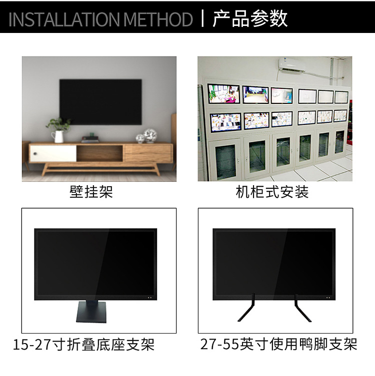 結(jié)構(gòu)設(shè)計(jì)適合嵌入式(組合幕墻安裝方式)、壁掛式、吊裝式、桌面支架方式安裝